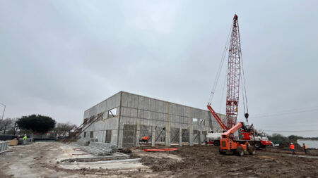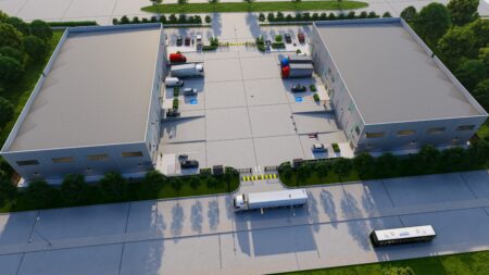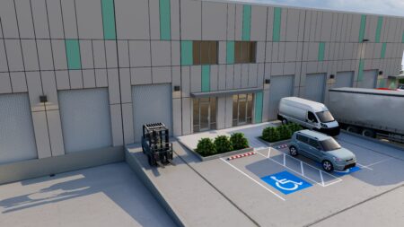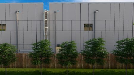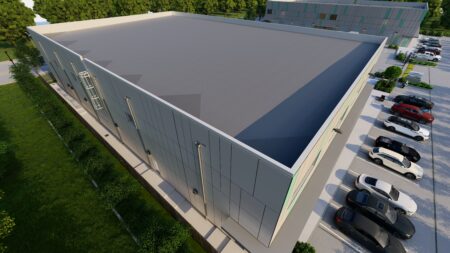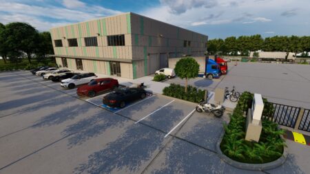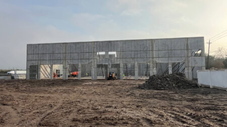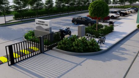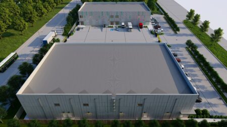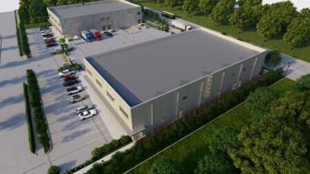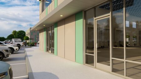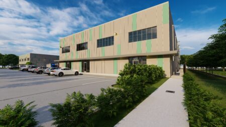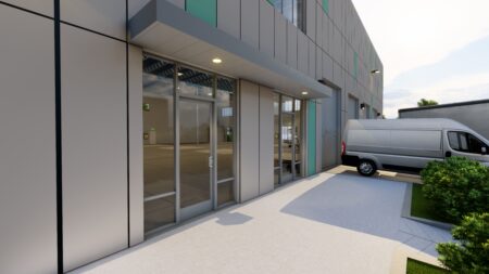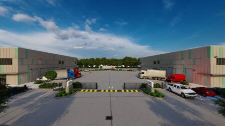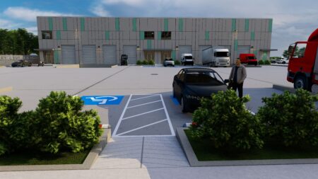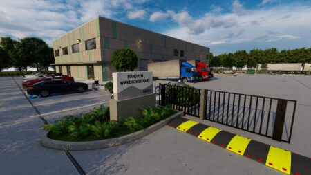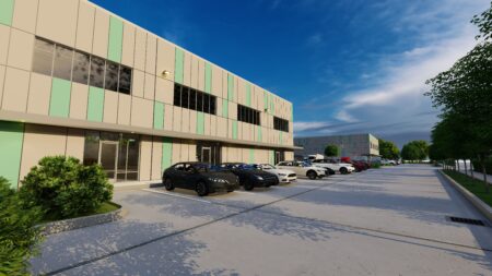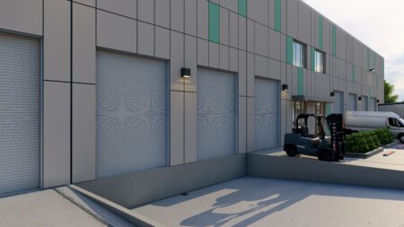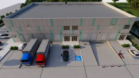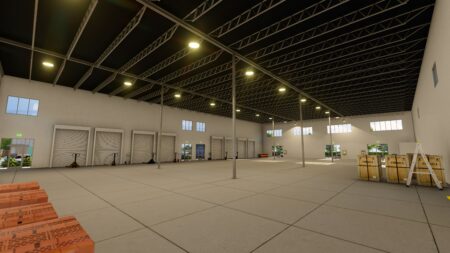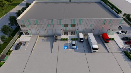 Total 33100 sqft concrete warehouse under construction to be completed by early 2026, 2 buildings 17300 + 15800 with total 30+ parking spaces and 8 loading dock + 8 drive in gates. Clear height is 28′. Price is for shell building. Could be divided into 8 spaces to rent out or sell as condo.