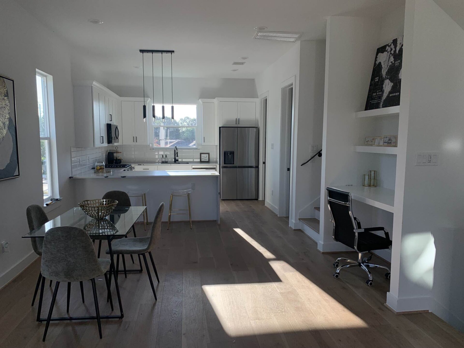 Beautiful newly constructed townhome located in a private, gated community of 26 townhomes at 316 Thornton with convenient access to Downtown, the Galleria, I-45, Beltway 8, and major thoroughfares. Surrounded by ongoing and upcoming developments, this carpet-free home features engineered plank flooring throughout, quartz kitchen countertops, and granite countertops in all bathrooms for a clean, modern finish. The home is move-in ready and includes all appliances washer, dryer, refrigerator, microwave, dishwasher, and stove. Enjoy a quiet, well-maintained community with great neighbors.